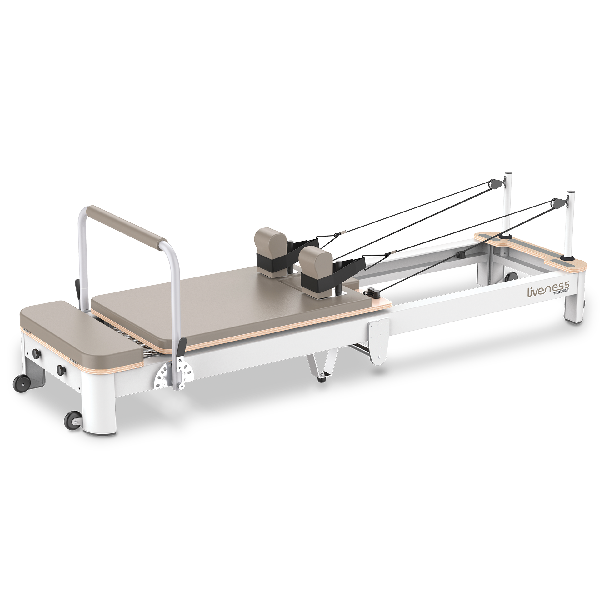 Der faltbare LivenessReformer aus Aluminium in den zarten Farben Moon & Sand wurde für all diejenigen geschaffen, die die Schönheit von Pilates überallhin mitnehmen möchten, ohne dabei auf Stil zu verzichten.