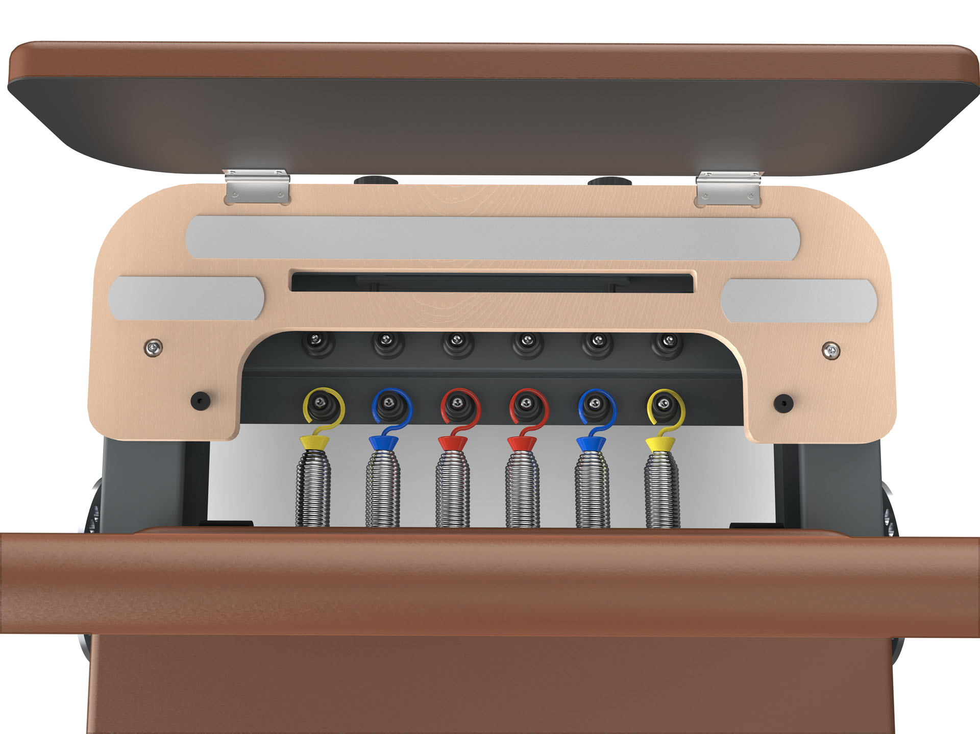 Designed for instructors and dedicated rooms, this Reformer represents the perfect synthesis of strength, precision and comfort. Every detail is designed to ensure a smooth, safe experience that enhances the teacher's work and gives the student the feeling of natural, powerful movement.