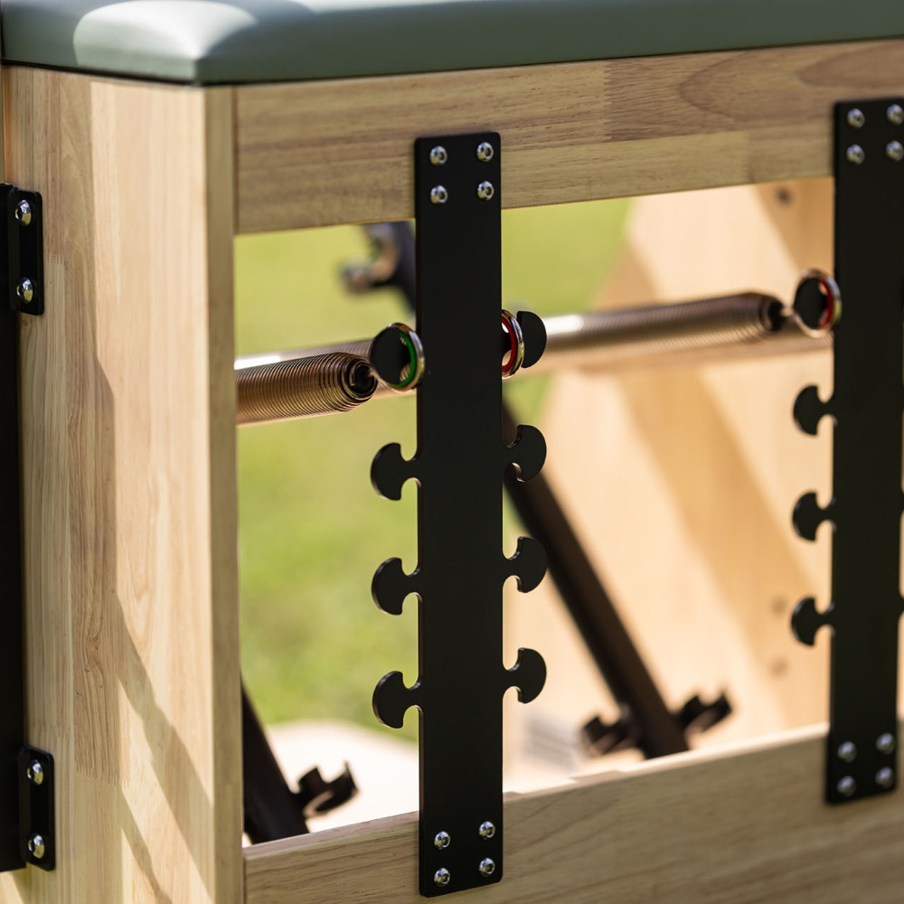 Controllo, concentrazione, precisione e respirazione sono il focus dell’esercizio, in piena filosofia pilates. Le 4 molle in acciaio temprato di differenti intensità, il mezzo per raggiungere l’obiettivo