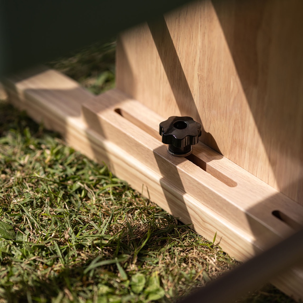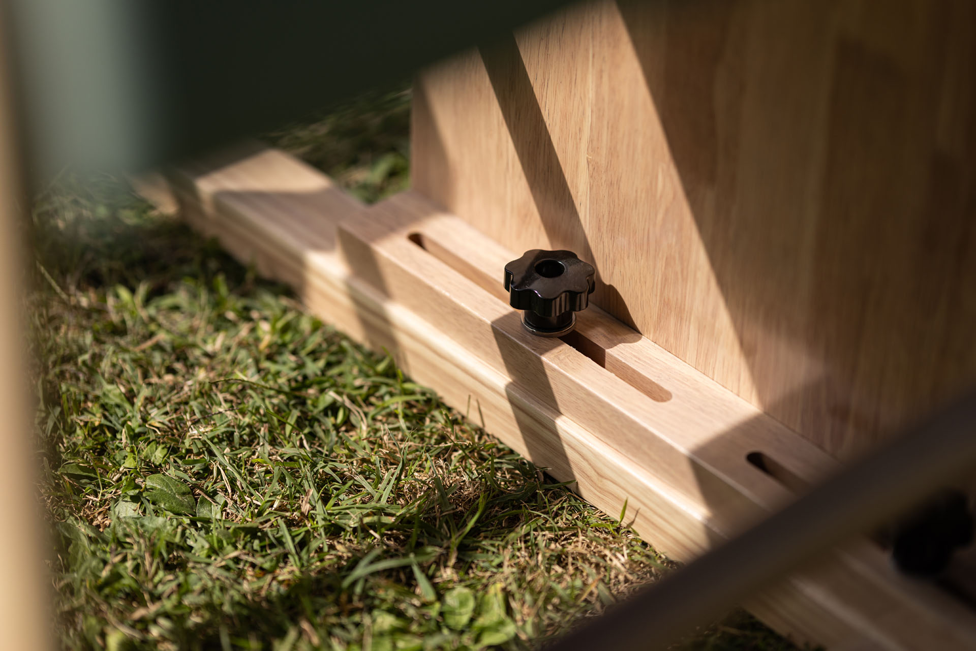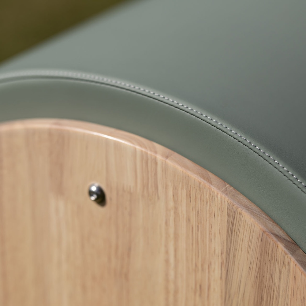 Una curva sinuosa, che evoca armonia ed equilibrio nei toni caldi delle foglie di tè, sostiene e accoglie in modo avvolgente la colonna vertebrale, facilitando l’allungamento muscolare