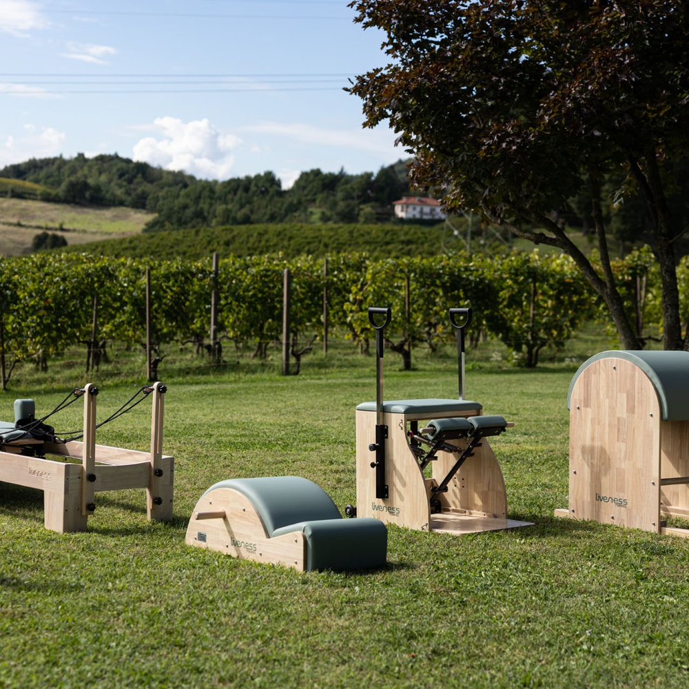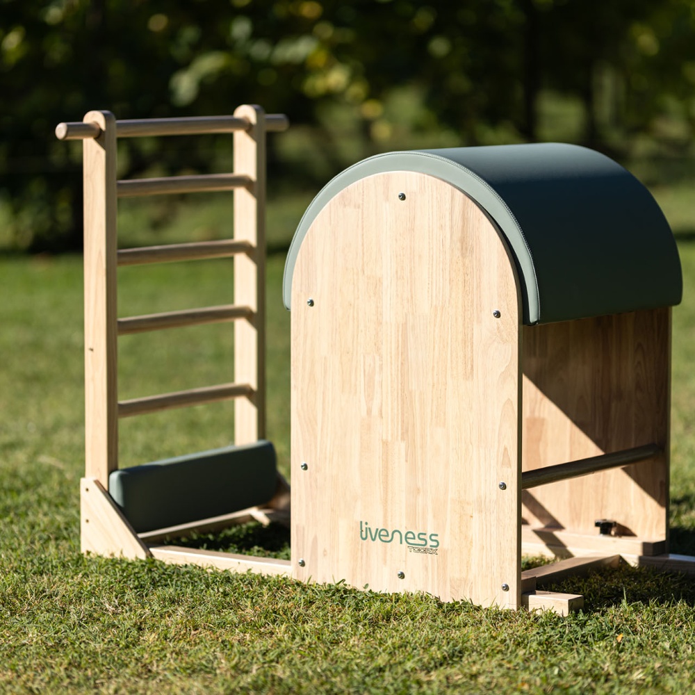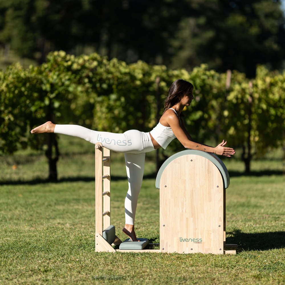 Nel silenzio del movimento, il Ladder Barrel diventa un ponte tra forza e grazia. La sua curva accoglie la colonna vertebrale come un abbraccio, guidando ogni allungamento verso una nuova consapevolezza.