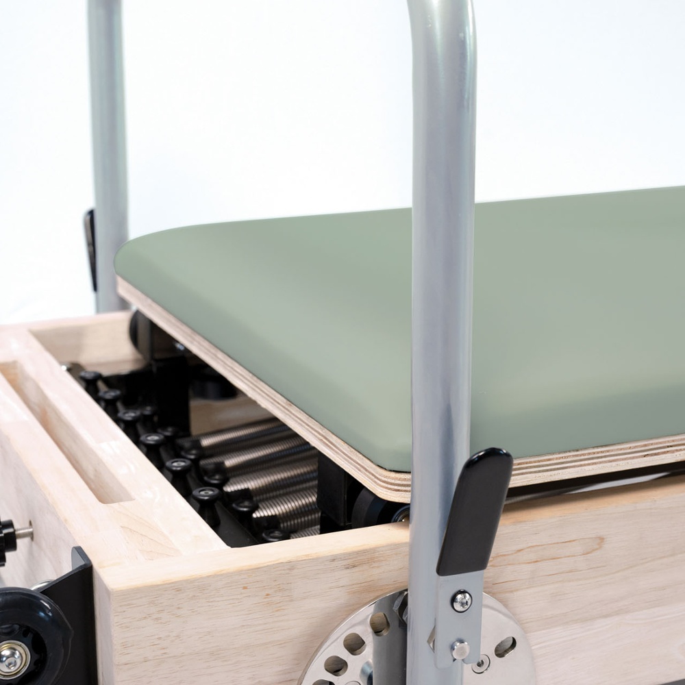 Progettato per istruttori e sale dedicate, questo Reformer unisce robustezza, precisione e comfort con la naturale eleganza del legno. Ogni dettaglio è pensato per garantire un’esperienza fluida e sicura, capace di valorizzare il lavoro dell’insegnante e regalare all’allievo la sensazione di un movimento naturale e armonioso.