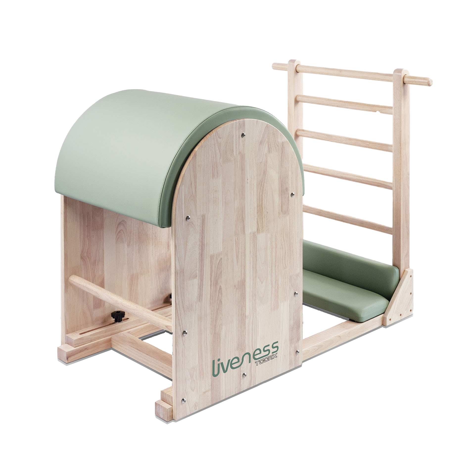 No silêncio do movimento, a Ladder Barrel torna-se uma ponte entre a força e a graça. A sua curva acolhe a coluna vertebral como um abraço, guiando cada alongamento para uma nova consciência.
